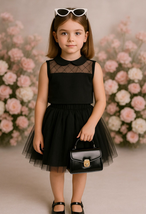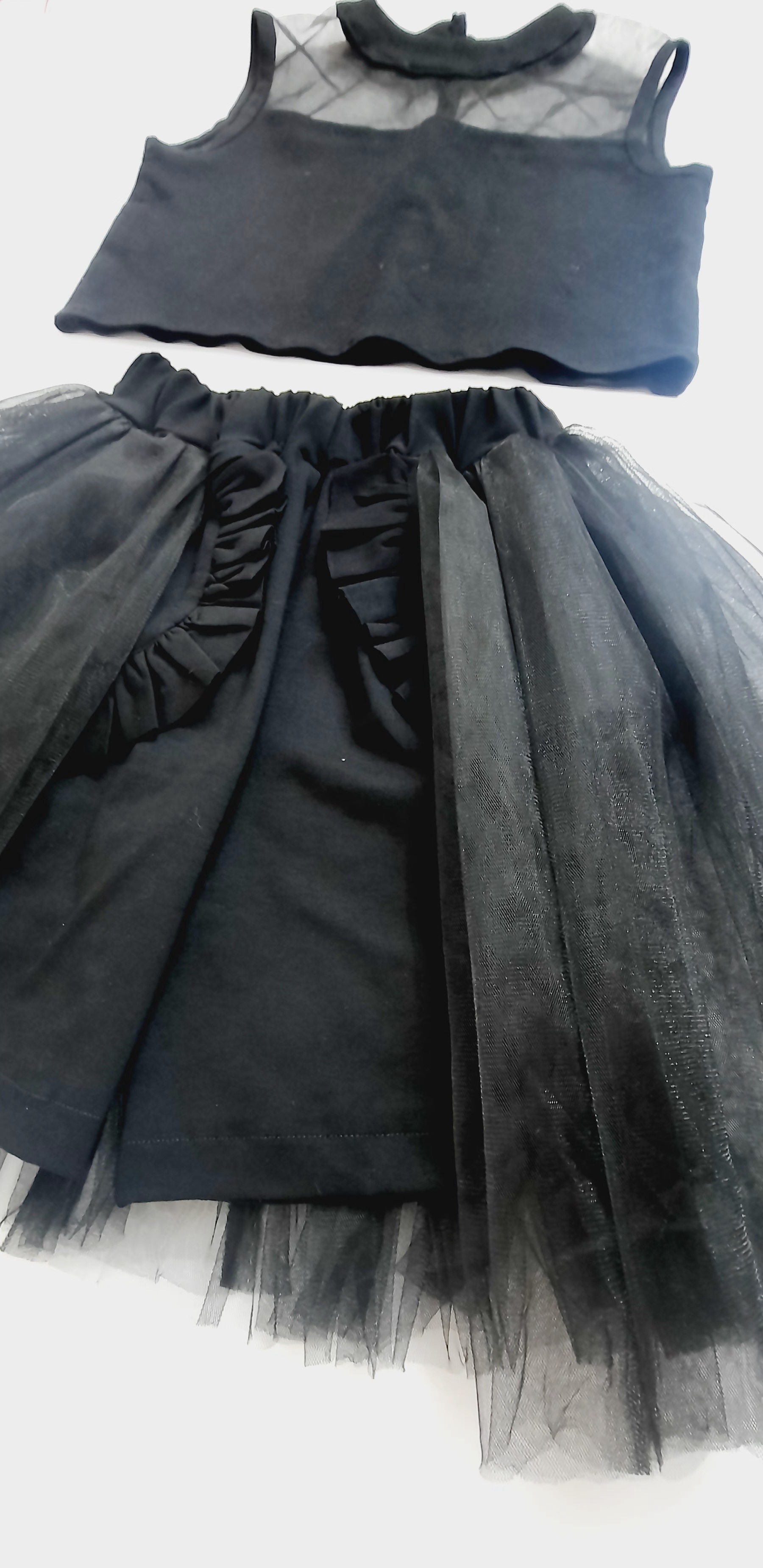 تاپ کراپ وشلوارک مجلسی بچگانه دخترانه.تاپ کراپ لاکرا و تور و شلوارک لاکراه و تور متصل.ژورنالی دخترانه مزون دوز